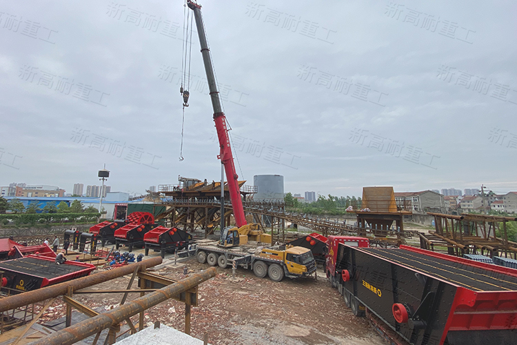 This project is a key investment project of Wuxue Investment Promotion Bureau. The focus of the project is to join hands with New Gaonai Group to build a comprehensive building materials company integrating high-standard machine-made sand construction and production in the middle and lower reaches of the Yangtze River. At present, the construction of the production line is undergoing an aerial relay and is in steady hoisting. From the crushing of raw materials to sand making, to screening, dehydration and other links, we have carefully configured a full range of high-quality crushing and screening equipment including compound cone crusher, vertical shaft impact crusher, rod mill sand making machine, vibrating screen, dewatering screen, filter press, etc. Each equipment is carefully selected based on New Gaonai's deep technical accumulation and market insight, aiming to help users achieve a double leap in the quality and quantity of pebble processing through a high-efficiency, low-energy consumption, and intelligent production model, and ensure the stable operation and excellent output of the production line.
