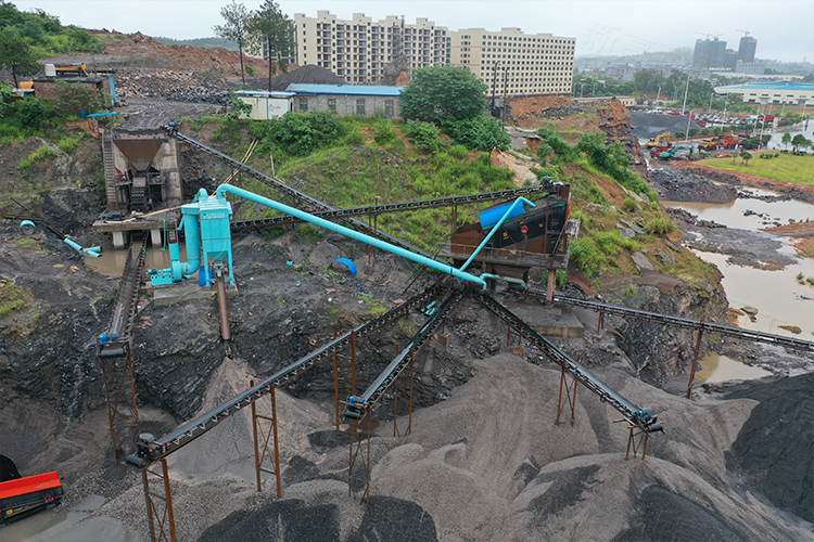 The project is located in Qidong County, Hengyang City. The raw materials are limestone and construction waste. The user's demand is to build two production lines, one for the production of four conventional materials and one for the production of water-stable materials. Referring to the user's needs, we designed two production lines according to their site and terrain and provided the equipment required for the production lines. The layout is smooth and simple, and the number of equipment and belt conveyors is greatly reduced. One of the lines is composed of Xin Gaonai ZGCX series 1038 feeder + XGN-Z series 1310 hammer crusher + 4YKZ series 2470 screen, with 5-10, 10-20, 20-30mm, and an hourly output of 200 tons; the other production line uses Xin Gaonai Heavy Industry ZGCX series 1550 feeder + XGN-Z series 1615 hammer crusher, which produces water-stable materials and an hourly output of 600 tons.