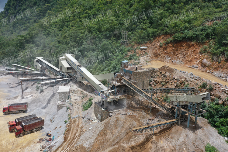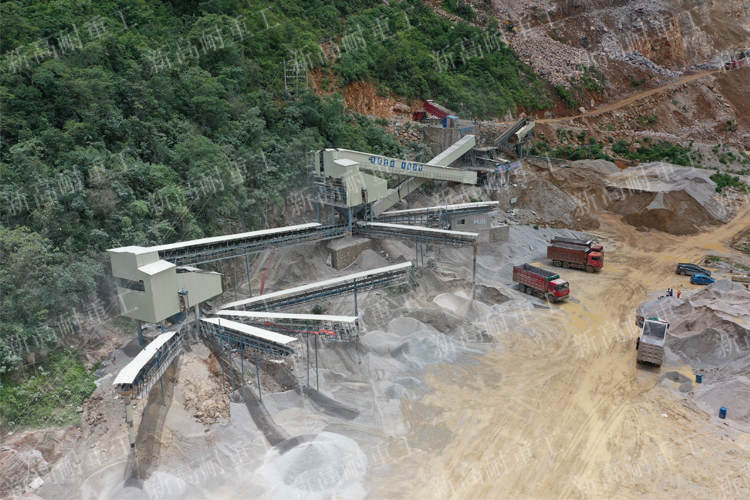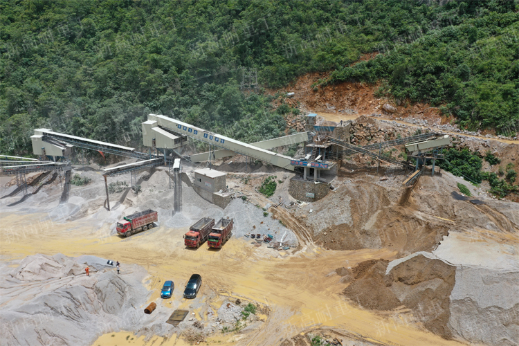 The hourly output of this production line is 500 tons. A single hammer crusher can complete the crushing and fine crushing of stones to meet the production needs of customers. Therefore, we recommend feeders, hammer crushers and vibrating screens to simplify the production line process. The feeder sends the materials to the hammer crusher for crushing, and the belt conveyor sends the crushed materials to the vibrating screen for screening. The unqualified materials are returned for secondary crushing until they are qualified and enter the finished material area.