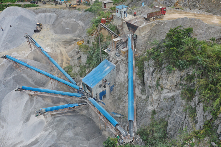 The customer's cost budget is not high, and they require environmental protection and less dust, so we have done dust prevention in the screening area and conveying area, which greatly reduces dust pollution. The entire crushing process is first fed evenly and continuously by the ZGCX1238 feeder, then crushed by the XGN-Z1513 hammer crusher, and then the crushed materials are conveyed by the conveyor belt through the 4-layer light vibrating screen of model 3070 to screen out four different specifications of materials, and the whole process is completed.