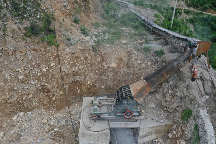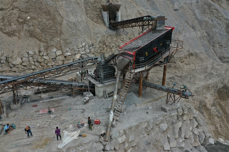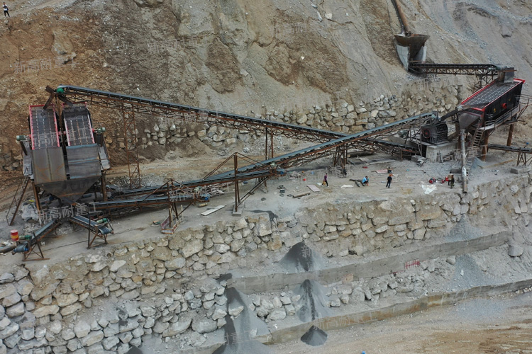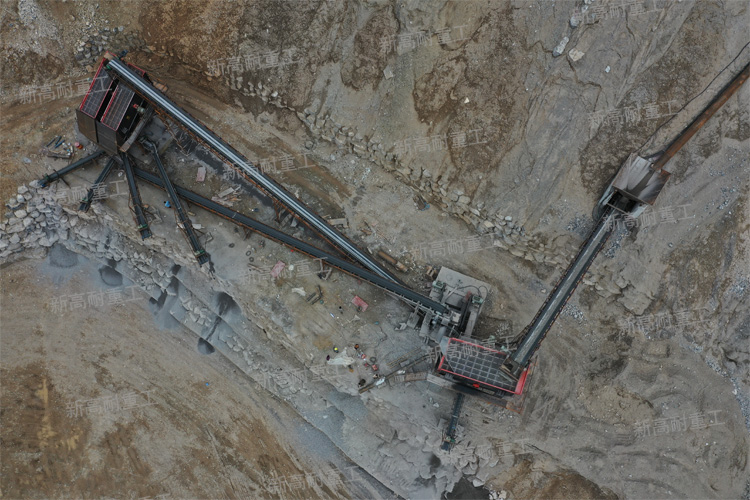 Limestone enters the raw material bin and is first evenly and continuously conveyed to the jaw crusher for coarse crushing through a vibrating feeder, and then sent to the XGN-Q1220 hammer crusher for fine crushing via a belt conveyor. The crushed material enters the 3YKZ3070 heavy-duty vibrating screen for screening, and the screened stone is sent to the sand making machine by a belt conveyor for crushing and sand making, and finally enters two 4YKQ2470 vibrating screens for screening to obtain finished materials.