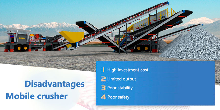 3. Poor stability: The stability of the mobile crusher may be affected by movement and transportation, and it is necessary to pay attention to the stability and safety of the equipment during use.