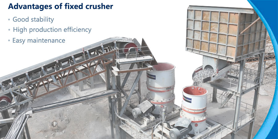 2. High production efficiency: Fixed crushers have low prices, easy maintenance, high production efficiency, and large processing capacity. High-capacity production lines can be designed according to production needs. It is mainly used in manufacturers with relatively concentrated stones and relatively stable supply and sales.