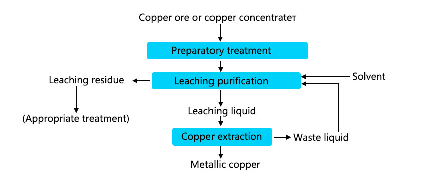 Hydrometallurgy is mainly used to process copper oxide ores, and is also used to process copper sulfide ores. Hydrometallurgy is to use solvents to smelt copper at room temperature, normal pressure or high pressure.