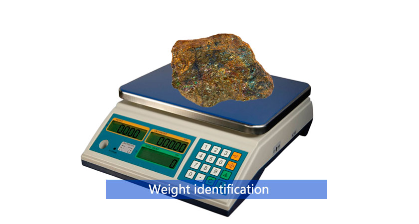 After identification through appearance, we identify the weight of the ore. Everyone knows that gold has a high density and a higher specific gravity than other metals. Generally speaking, real gold ore is heavier, with a specific gravity of about 17 to 19, and most stones have a specific gravity of 12 to 15, so we can use an electronic scale to measure the weight of the ore, first put the ore in a density solution, and then infer the density component of the ore by comparison.