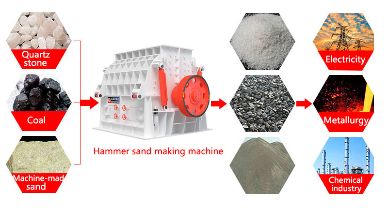 As an efficient and reliable crushing equipment, the hammer sand making machine uses a high-speed rotating hammer head to impact and shear the materials to achieve crushing and sand making effects.