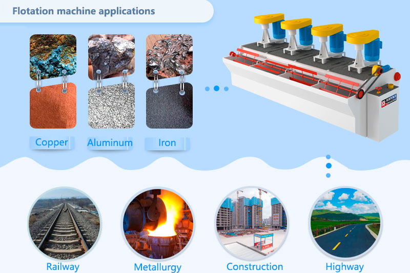 The flotation machine is mainly used to select metal minerals such as gold, silver, copper, iron, lead, zinc, molybdenum, nickel, and aluminum. It can also be used for the selection of ferrous metals and non-metals. It has the advantages of simple structure, convenient operation, and good mineral processing effect, and is widely used in mining and metallurgical industries.