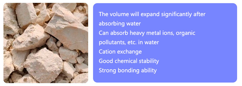 Adsorption: Bentonite has a relatively large surface area and can absorb heavy metal ions, organic pollutants, etc. in water.