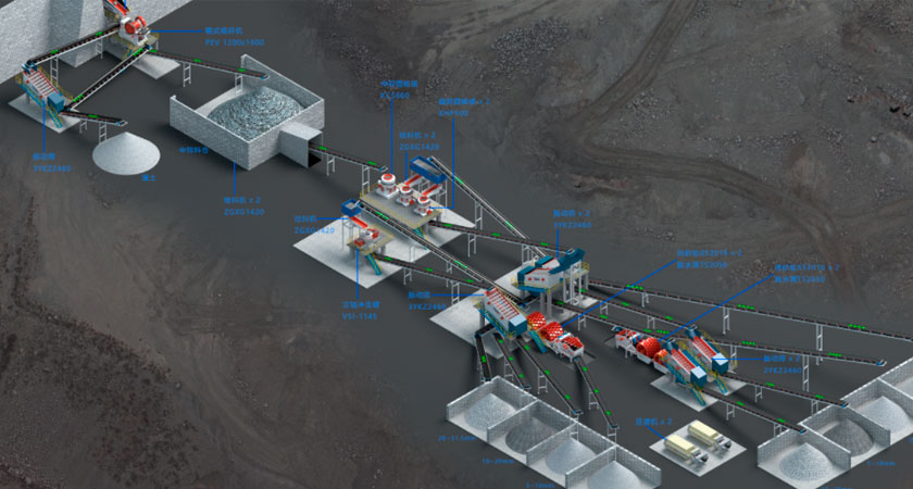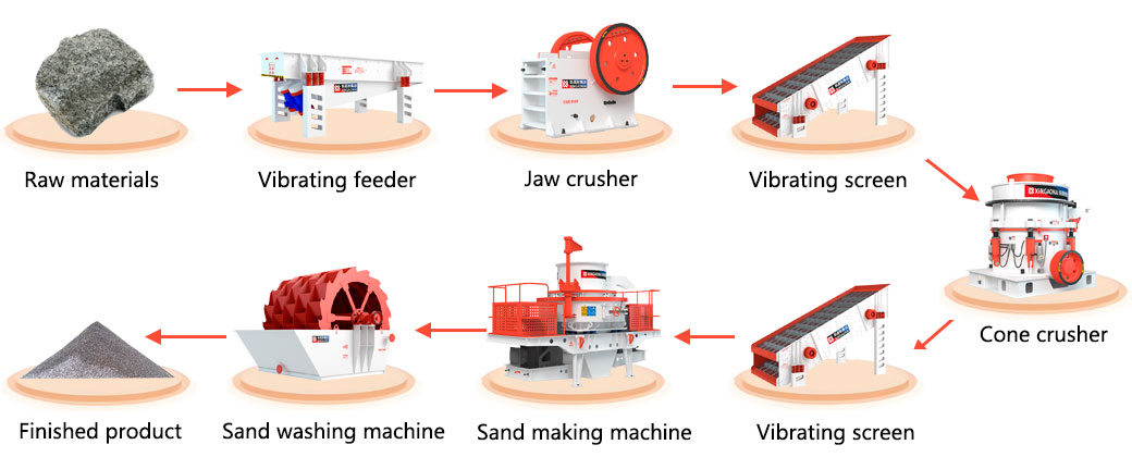 The diabase sand making process is the production and processing process of the mine. The specific process is as follows: