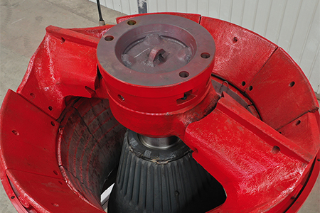 The moving cone can be raised and lowered by a single hydraulic cylinder, which can realize various functions such as adjustment of the discharge opening, cleaning, overload protection, etc. The medium and fine crushing of various cavity types can be realized only by replacing the fixed cone.