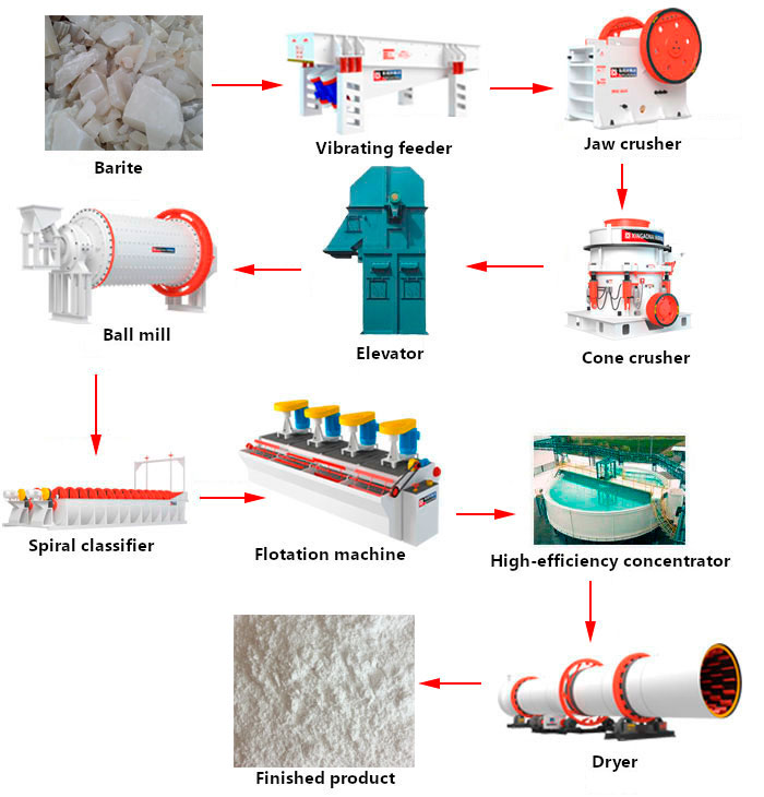 [Process introduction]:Barite is brittle and fragile, and the crystals are in the shape of large tubes. For the selection of barite, Xingaonai generally has gravity separation, magnetic separation and flotation.